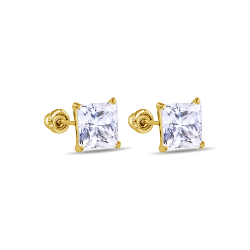 14IFJ00039 – 14 Karat Yellow Gold Square Moissanite Stud Screw Back Earring