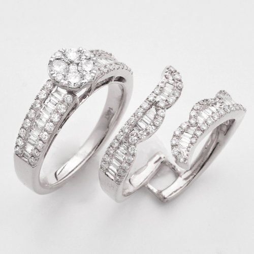 14KW 1.40CTW DIAMOND FLOWER CENTER + BAGUETTE
