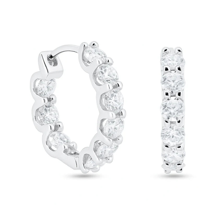 925 Sterling Silver Moissanite Stone Hoop Earrings