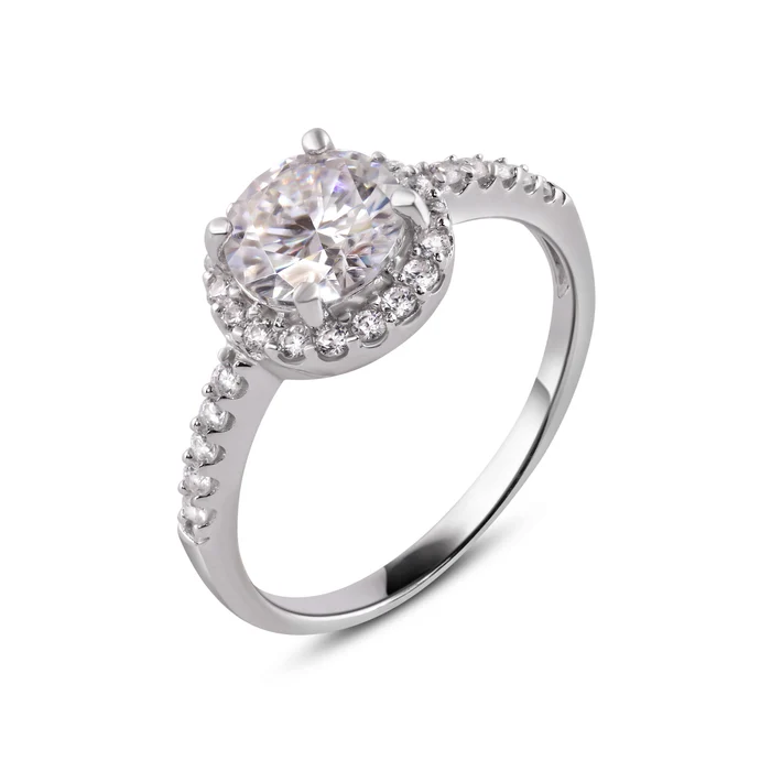 925 Sterling Silver Rhodium Moissanite Stone Engagement Halo Ring – IFJR00010