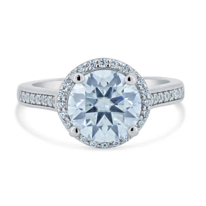 Rhodium Plated 925 Sterling Silver Halo Round Moissanite Stones Ring – IFJR00008